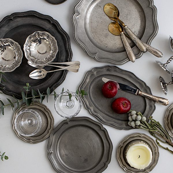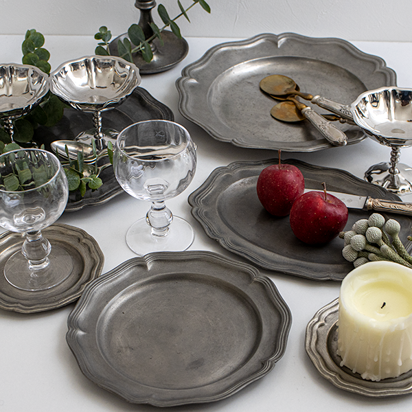 エタン・ピューター 花リムプレート18.5cm|Antique Etain Pewter