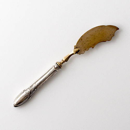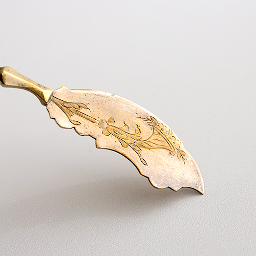 ミニャルディーズ用のサービングカトラリー。プティフールを取り分ける際に使うサーブ用のナイフ。デザートの他にオードブルなどの取り分けにもおすすめです。ハンドルはシルバー製、先端は装飾入りの真鍮製になります。