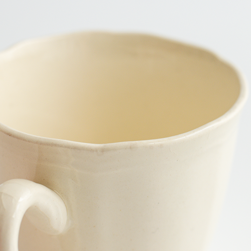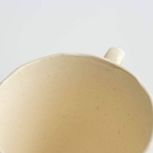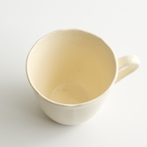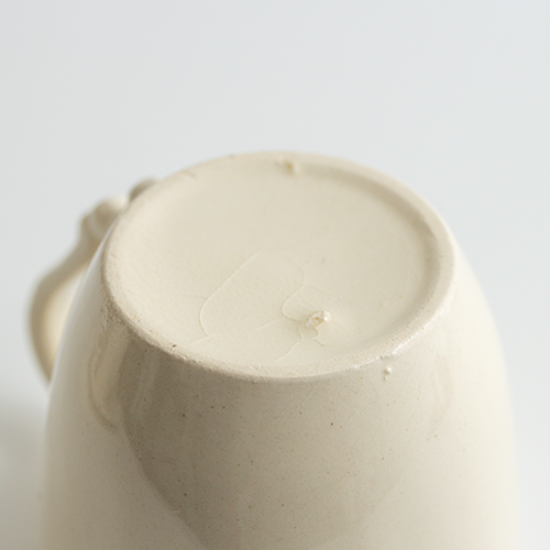 わずかな貫入とステイン、ソゲ、釉薬溜まり、粒状の突起、窯傷などが見られます。カップは刻印なし。画像でご確認ください。