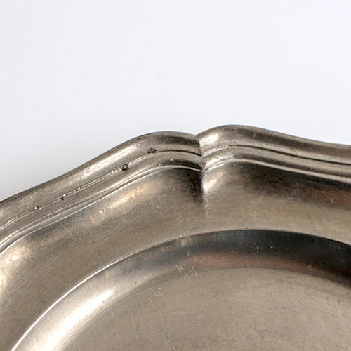 古くから食器や燭台などに重宝されてきた錫を主原料とした金属製プレート。錆びにくく小物置きとしてもおすすめです。王冠と天使の刻印入り。錆びにくいのでアクセサリーなどの小物置きとしてもおすすめです。歪みや潰れもなく状態は良好です。