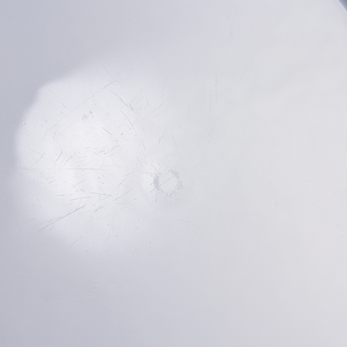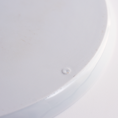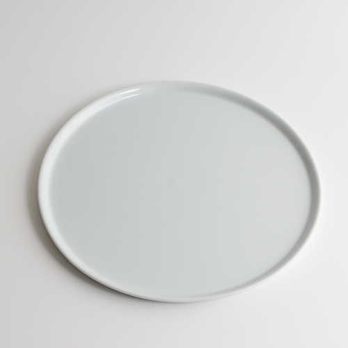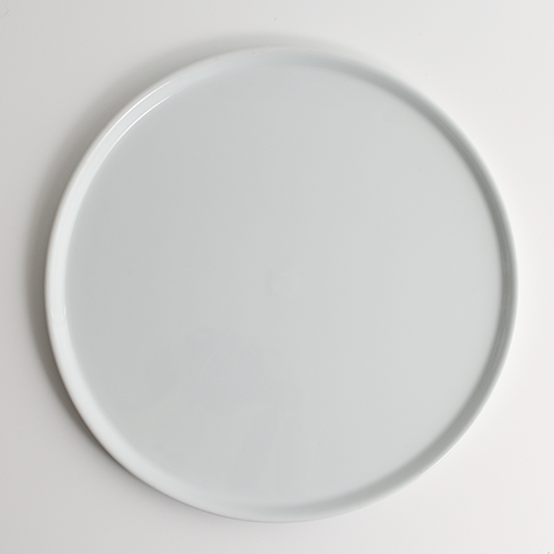 底がフラットな直径30cmの白磁のトレー。すっきりとしたシンプルなデザインで、ディスプレイ用としてはもちろん、小さめの食器やカトラリーをまとめるのにもおすすめです。目立つダメージはなく、全体的に良好なコンディションです。